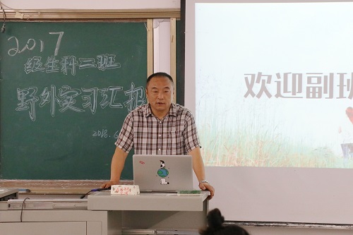【本网讯】与奇花异草相伴,同鸟兽虫鱼同行。2018年6月21日19:00,2017级生物科学二班在树人楼C201开展野外实习实训及班级活动总结班会。此次别开生面的班会邀请了阿坝师范学院党委书记、资源与环境学院作物学教授、生物科学二班副班主任吴昊参加。