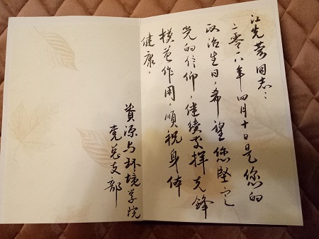 首先,党支部书记崔娜娜向三位同志赠送了党员“政治生日”贺卡和写有祝福语的笔记本,三位党员心情十分激动,发表了感人肺腑的感言。这是资源与环境学院党总支第一次给党员过“政治生日”。学院党总支书记江先蓉提到以后会每月集中给大家过“政治生日”,希望老师们可以随时向党组织提出合理化建议,开展丰富多彩的有特色的活动方式,提高活动的实效性。开展共产党员“政治生日”活动,是促进党员自我教育、自我管理、自我提升的有效举措,是加强党组织与普通党员相互沟通的桥梁和纽带。