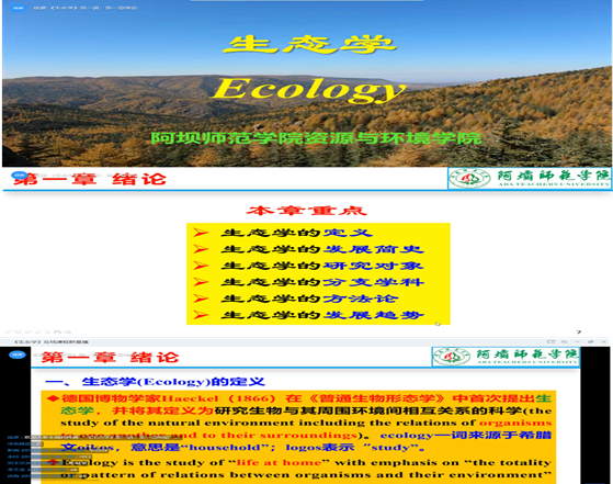 教师在阿坝师范学院课程平台上建立《生态学》课程平台,将教学PPT、视频等学习资料上传平台,提供学生自主学习资料。教师课前通过学习通APP提前发布课前预习任务,为学生建立答疑讨论区,培养学生自主学习能力,提出问题和解决问题的能力。课中通过课程平台、学习通APP、钉钉直播等方式在线答疑,并对章节重难点知识进行讲解,对理论知识体系进行梳理,加深学生对课程知识的掌握和运用。课后通过学习通APP发布作业,通过融智云考发布练习,进一步巩固所学知识。