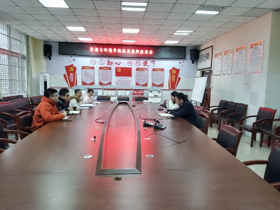 【本网讯】为了进一步加强青年教师队伍建设,更深入地了解新进教师入职以来遇到的问题和困惑,促进同事间的经验交流,资源与环境学院于12月23日上午9:00在学院201会议室召开新进教师座谈会。资源与环境学院党总支副书记余列、副院长王丽华、党政办主任曾淼和今年新进5名教师参加座谈会。会议由余列书记主持。
