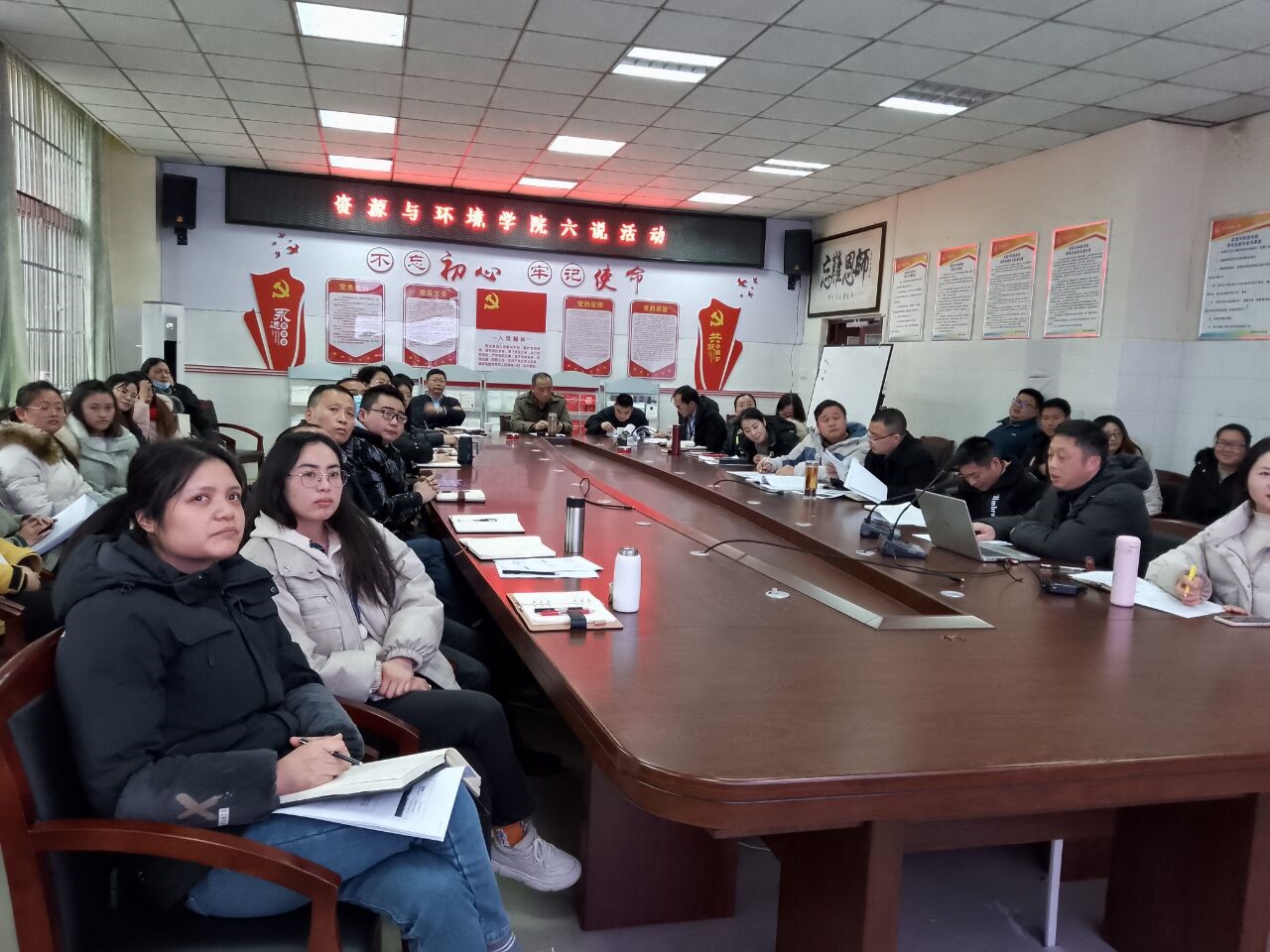 【本网讯】为了进一步促进学院评建工作的开展,提高全院教师“抓课堂、提质量”的思想意识,有效提高教育教学质量,凝练应用型本科教育教学人才培养特色,根据《阿坝师范学院迎接本科教学合格评估工作实施方案》《阿坝师范学院2021-2022学年第一学期评建工作计划》和《关于开展评建工作“六说”活动的通知》要求,资源与环境学院2022年1月5日下午4点在学院201会议室开展了“六说”活动。学校党委书记吴昊,党委副书记、校长向武,副校长毛英,教务处副处长袁甲,评估办刘全飞、钟义,学院全体教师参加会议。