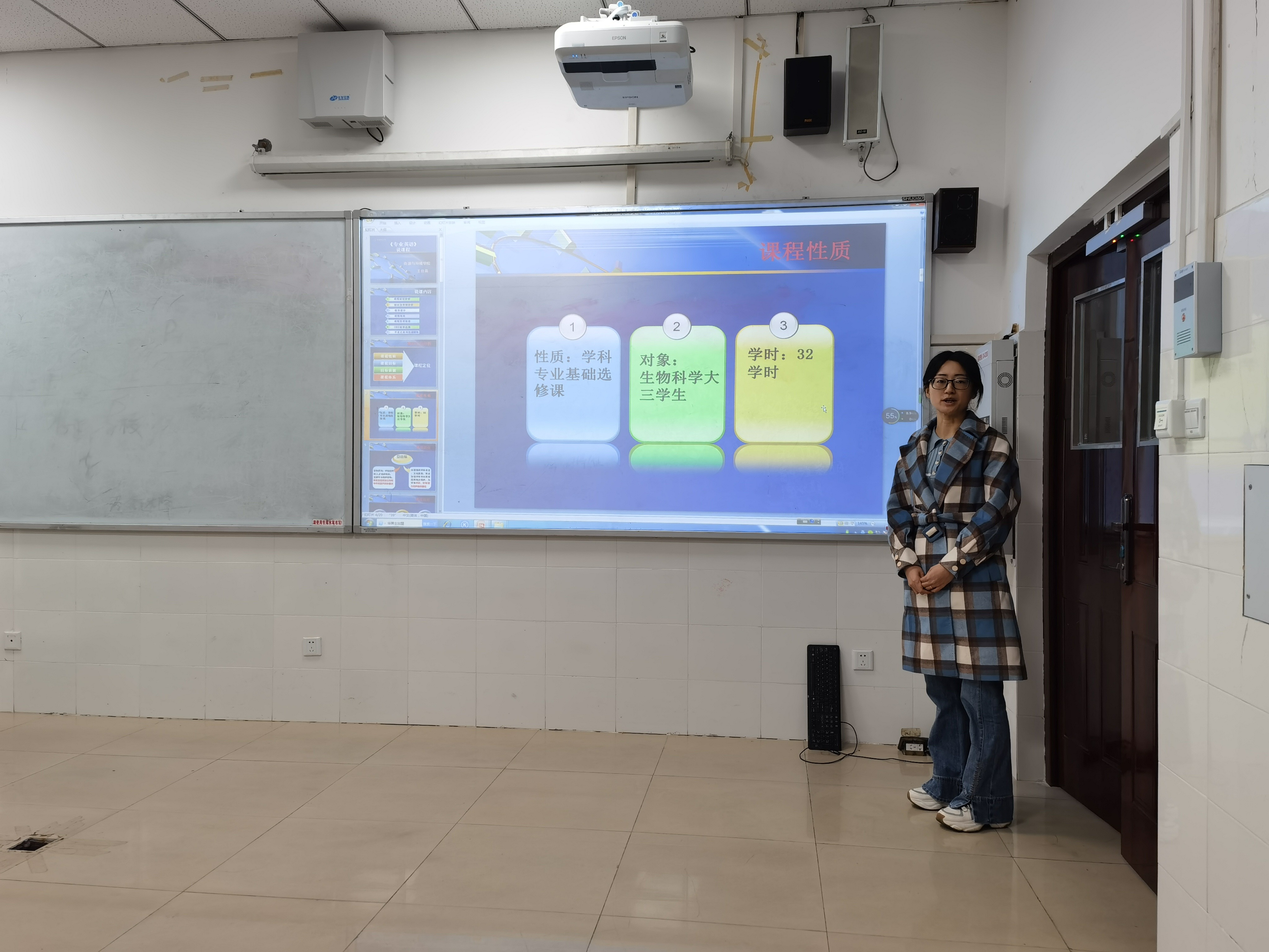 王仕英老师说课程的内容为《生物专业英语》,张小琴老师说课程的内容为《教学反思与教师专业发展》,鲜雪梅老师说课程的内容为《动物生理学》,谭铃老师说课程的内容为《写作与沟通》。老师们分别从课程性质、教学内容、教学方法、学习方法、考核方法、教学资料和教学改革等方面对所教授课程进行了说明。从说课程的过程来看,老师们对所教授课程都有较深刻的把握,做好了本学期教学工作的准备工作,很多教学改革的思路是在深刻体察学情的基础上提出的,具有良好的针对性。