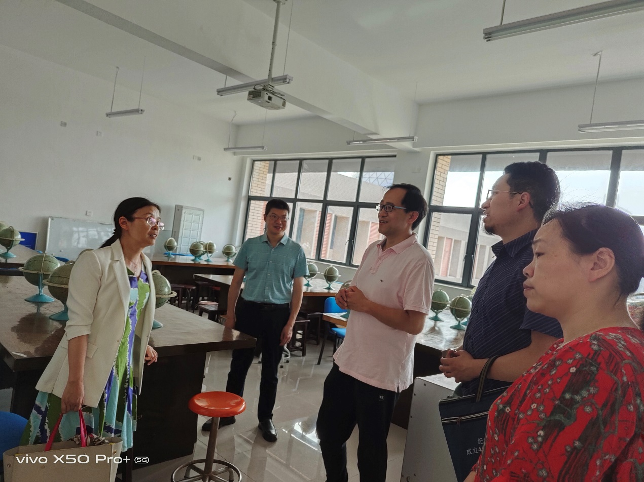 在与地理与资源科学学院的座谈会上,地理与资源科学学院院长艾大宾、党总支书记齐永朝、副院长何阳阳、罗杨洁分别就各自分管工作做了经验分享,双方围绕人才培养方案优化、科研平台建设、实习实训基地建设、地理科学专业师范认证、教师队伍建设、学生工作等方面进行了深入交流。座谈会讨论热烈,收获颇丰。会后,大家参观了地质、土壤、测绘、天文等专业实训(验)室,并就实训(验)室管理、学生技能培养等方面进行了细致的交流讨论。