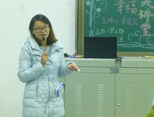 周末大讲堂,绽放教师风采。12月2日晚上7点整,在树人楼c103举行了由学工部主办,外语系,人文系,生化系共同承办的周末大讲堂。窗外凉风习习,而室内决赛的战鼓才刚刚打响。对决赛的主题“幸福是什么”,三位选手带来了不同的答案。