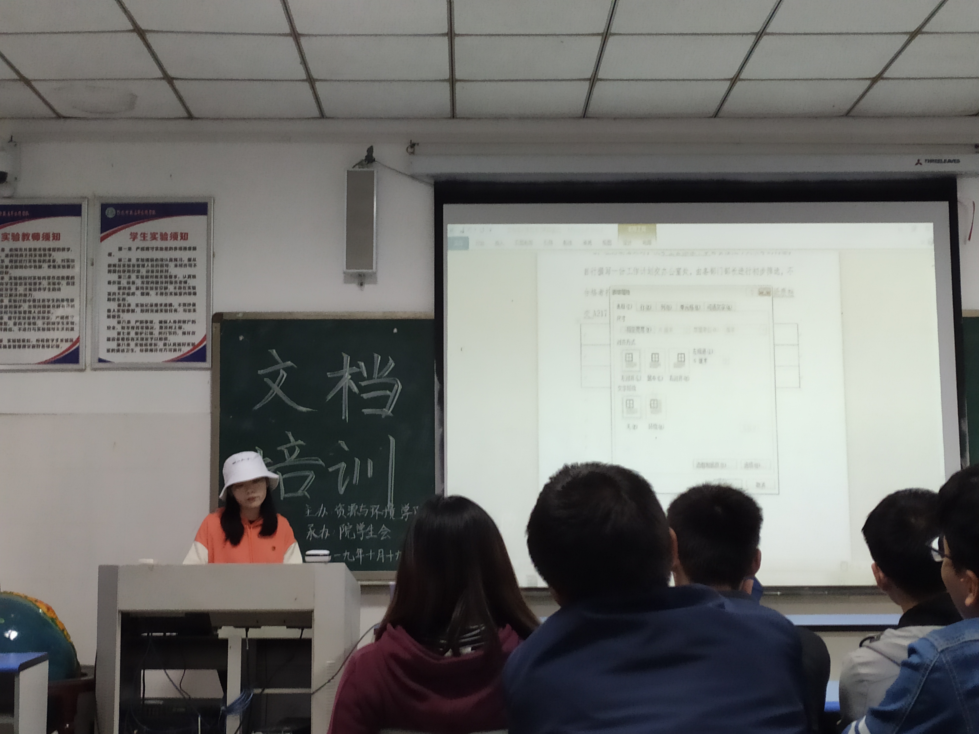 【本网讯】为了我院各班工作的更好开展,使新的干事融入学生会,提高干部,干事的工作能力以及提高各部门干事对各类活动、总结书格式的准确掌握,资源与环境学院学生会于10月19日下午两点半于实验楼A114教室举办了该活动。