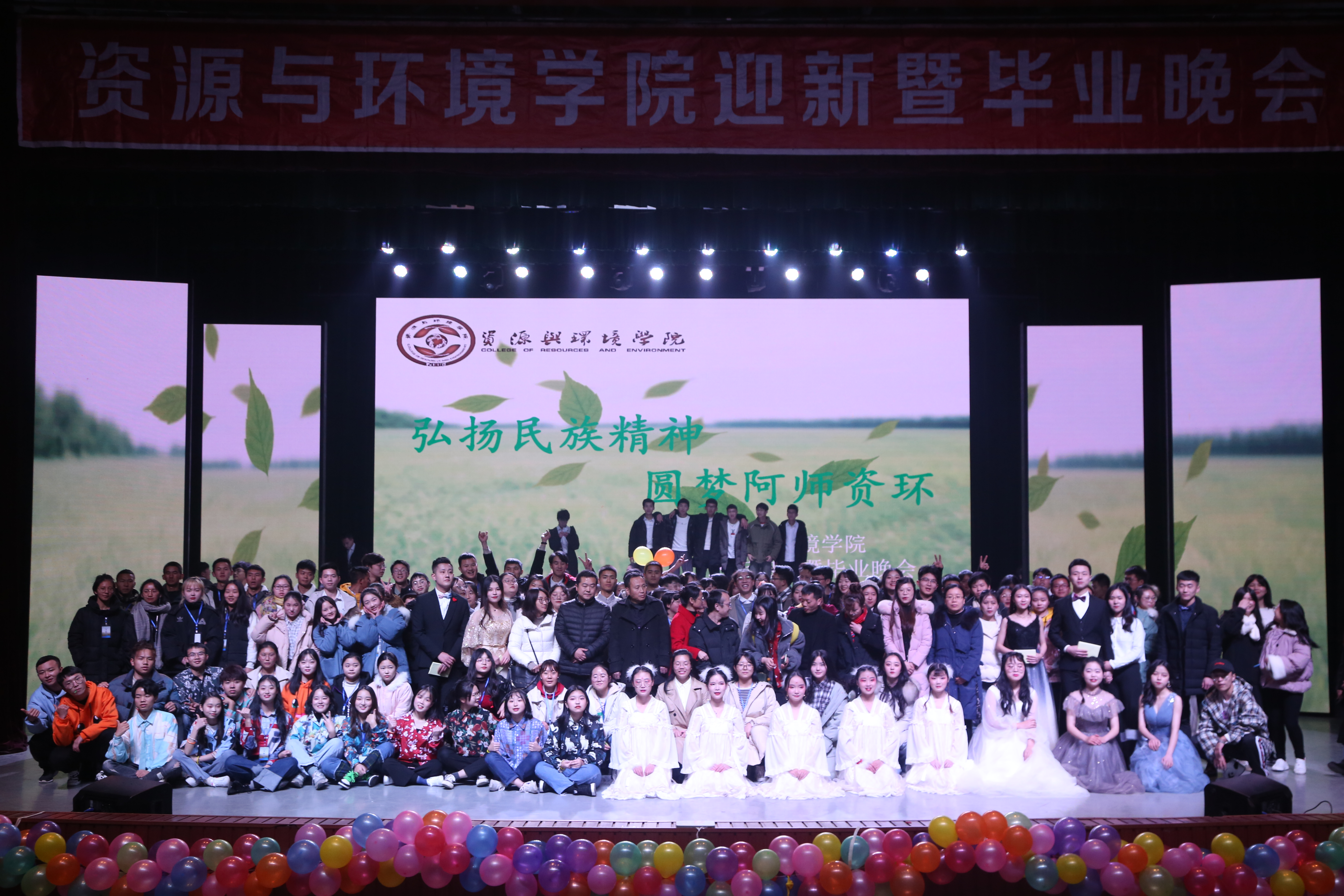 【本网讯】青春像一首诗,清新脱俗,短暂而美好;青春似一曲歌,婉转动听,清雅而高贵;青春如人生剪影,那里的我们不懈奋斗,不断向前;青春如万丈晴空,那里的我们肆意翱翔,不知疲倦。为迎接小萌新,欢送毕业生,12月11日晚上七点,以“弘扬民族精神,圆梦阿师资环”为主题的19级迎新暨毕业晚会在南苑剧场举行。学院党总支书记江先蓉,曾淼老师,梁剑老师,唐功老师等与全院学生共同观赏了这场气势恢宏的视听盛宴。