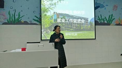 【本网讯】我院于2019年12月25日晚7点在实验楼A207召开了“2016级生物科学专业毕业生就业促进会”,院党总支书记江先蓉、主持工作的副院长杨子松教授、就业干事刘文超、2016级生物科学班主任李懿以及2016级生物科学班全体同学参加了会议。
