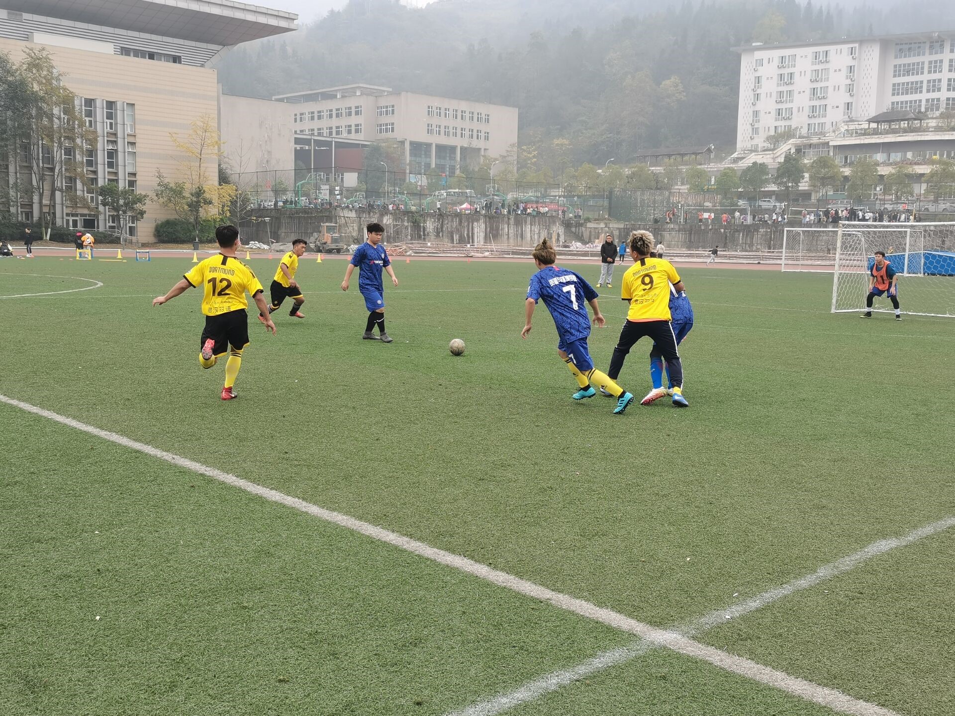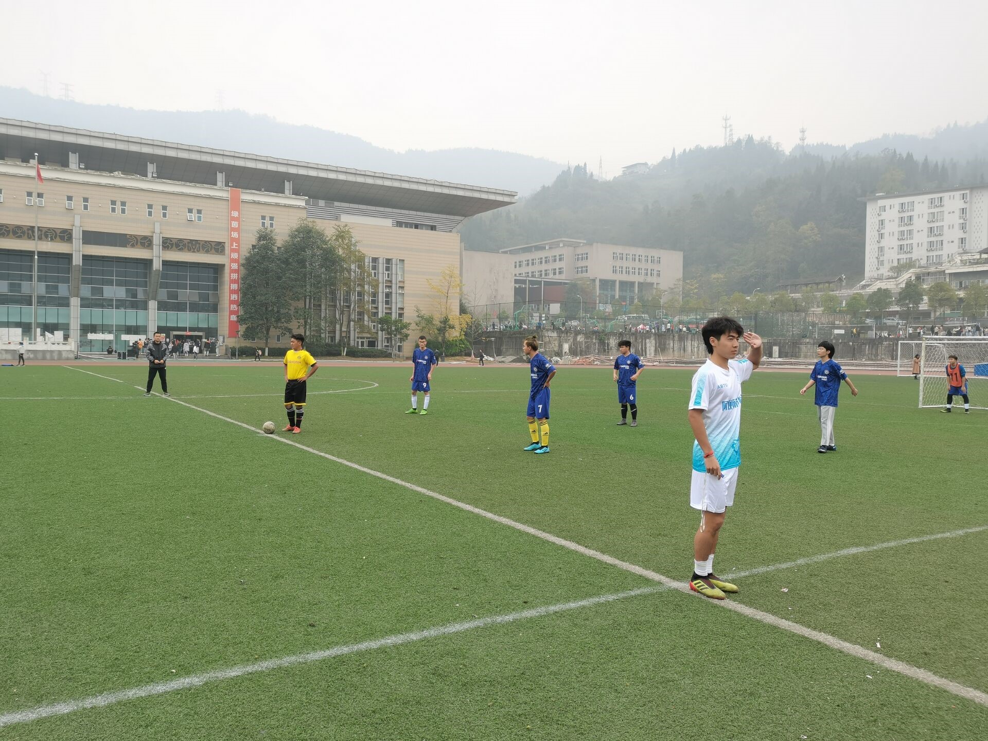 比赛进行了十分钟左右,藏汉双语学院队员右路带球,摆脱防守人员,一脚劲射,皮球入网,资源与环境学院0:1落后。丢球的资源与环境学院队员,并没有被这粒进球影响,继续积极地发动进攻,虽然有很多次破门的机会,但都被藏汉双语学院一一破解。