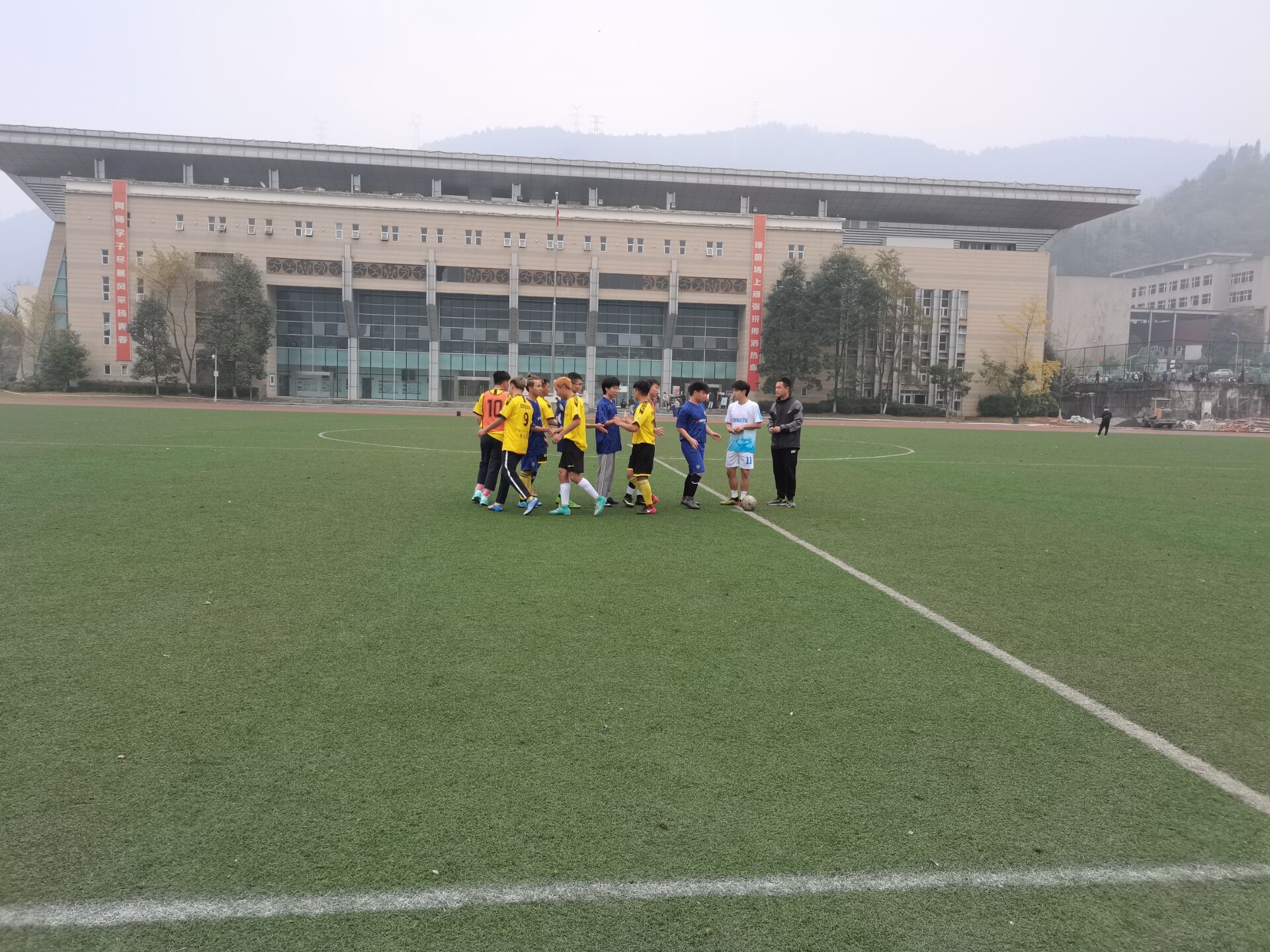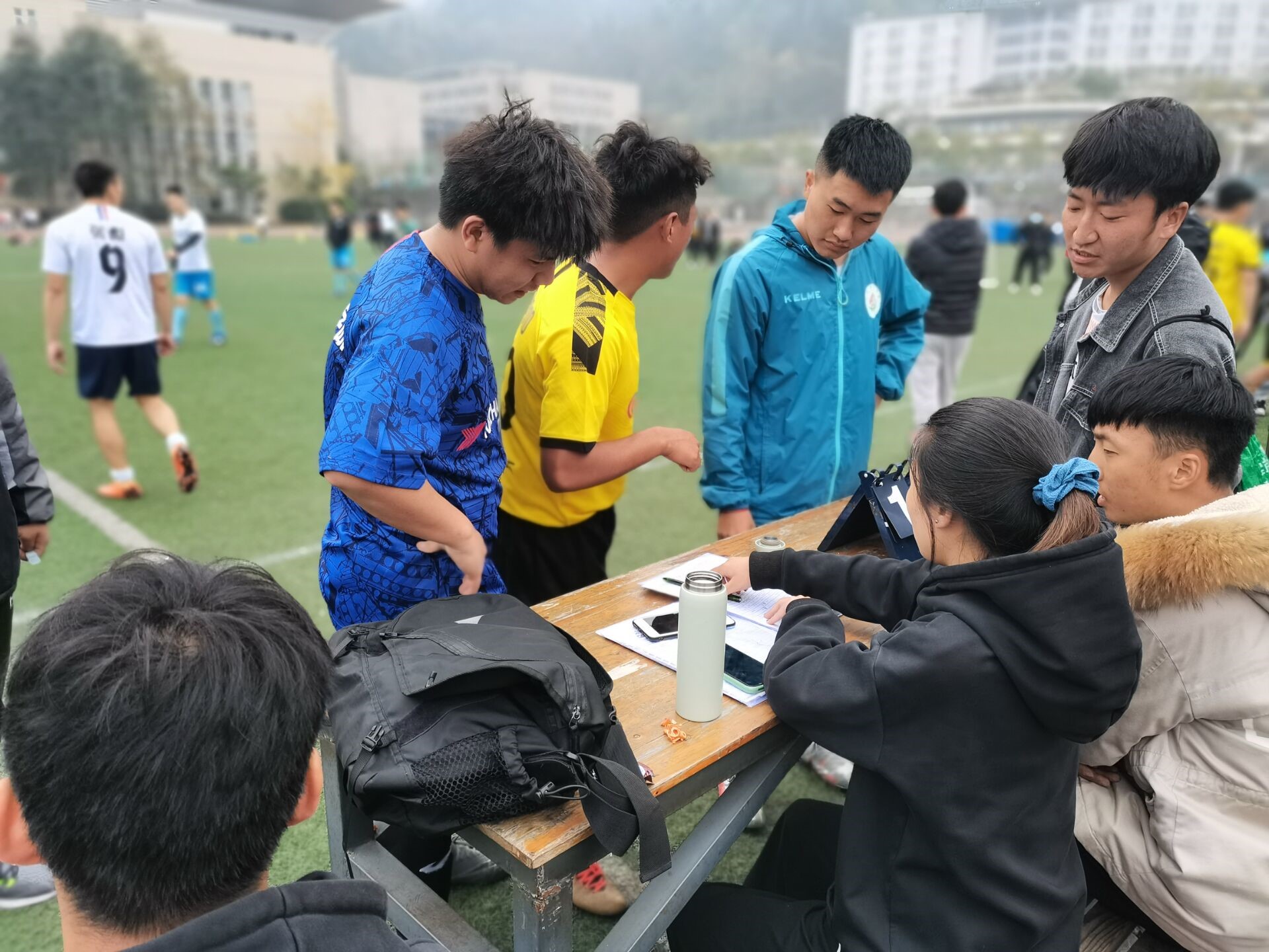 最终,裁判吹响了终场的哨声,资源与环境学院0:1憾负藏汉双语学院。两队再次握手,两队队长上前签字,比赛结束。