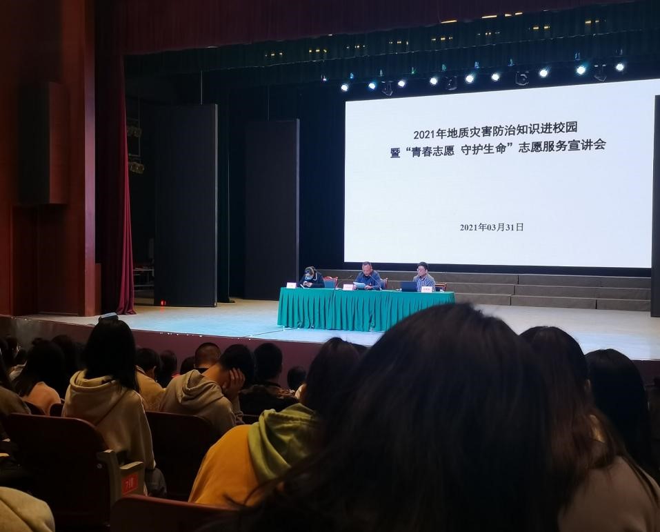 【本网讯】2021年3月31日下午2:00,由学生社团联合会主办,九州地理协会、博雅历史文化协会、环保与科技协会、心理学协会共同参与的地质防灾知识宣传活动在校南苑剧场举行,参与本次活动的成员有九州地理协会成员以及其他协会学生。担任本次活动的主讲人是中科院成都山地所工作的刘维明博士。