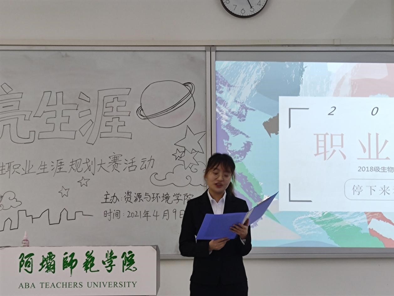 【本网讯】为进一步增强我院学生的科学规划职业生涯思想意识,推动实现最高质量就业,2021年4月9日13:00,由资源与环境学院主办的阿坝师范学院第一届大学生职业规划大赛如期在树人楼F103举行。我院党总支副书记余列副教授、刘文超老师、王艳蓉老师担任评委,资源与环境学院18级7名同学参加。