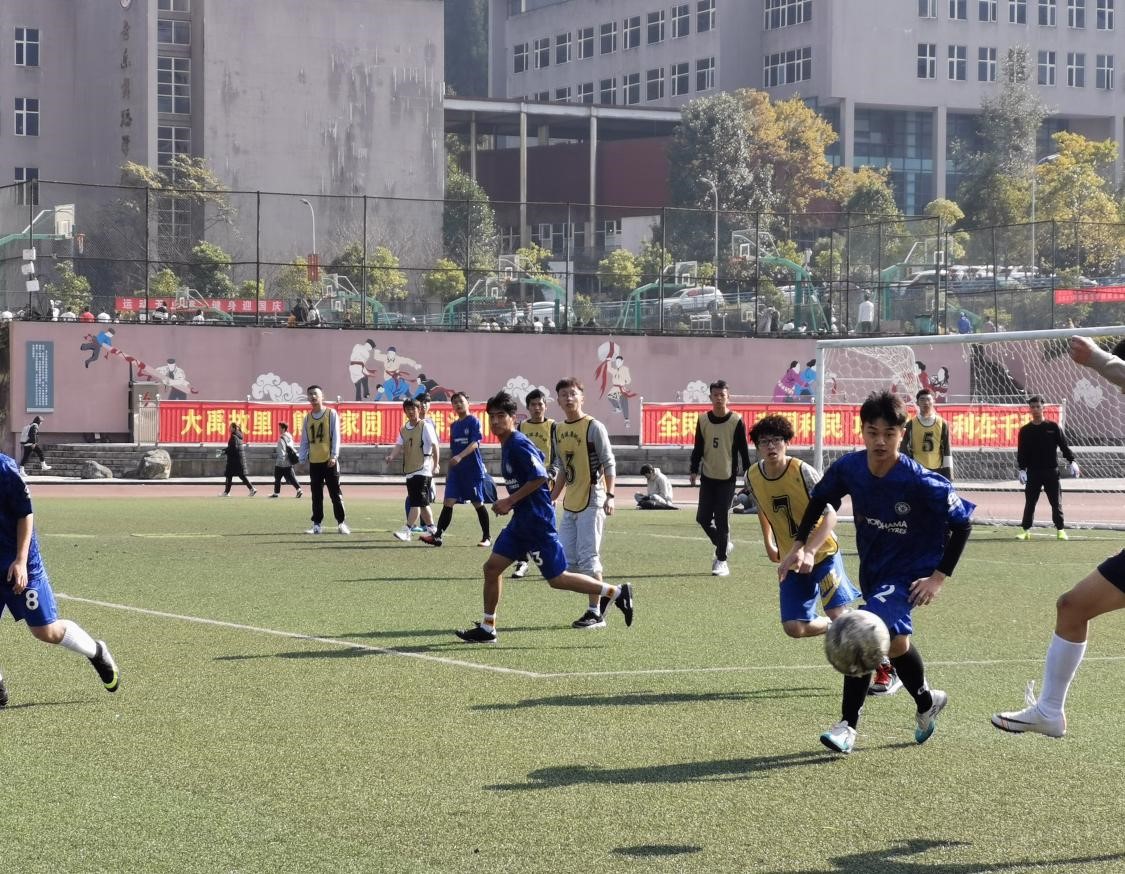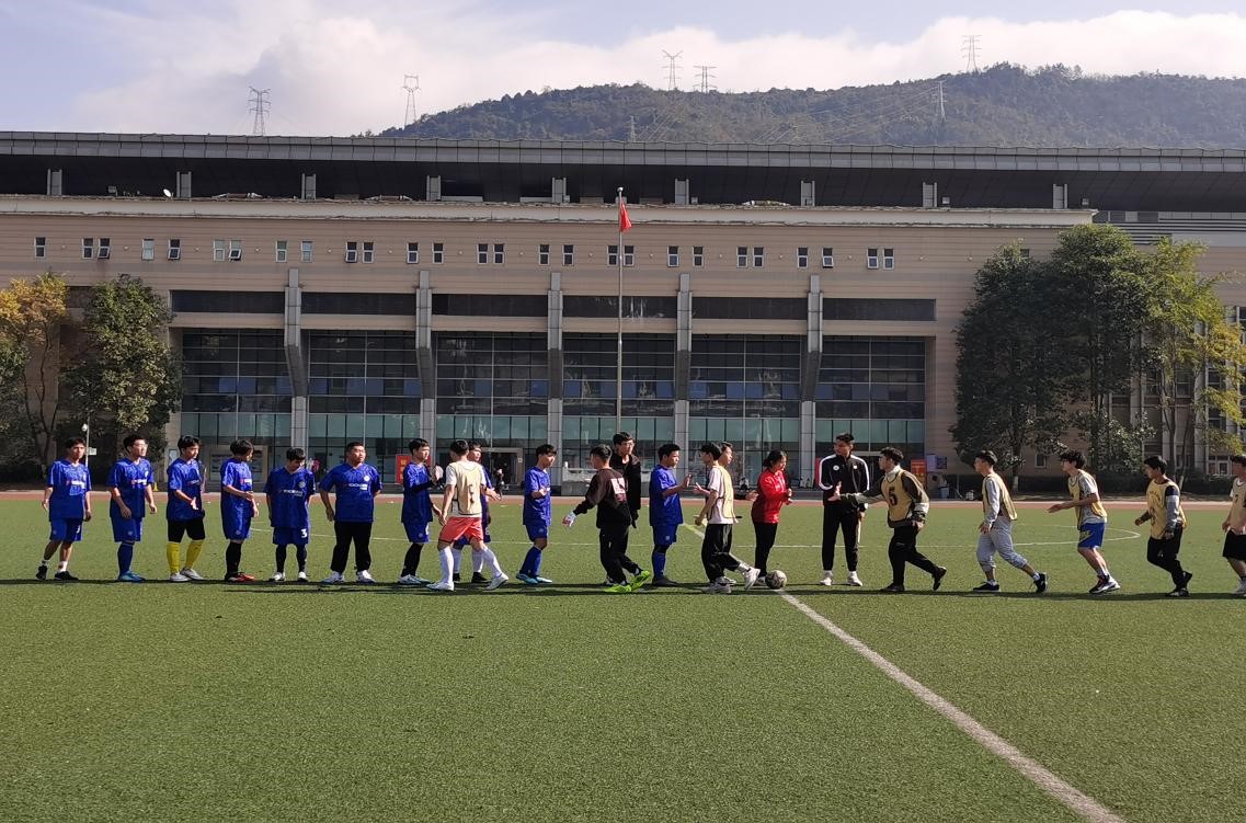 【本网讯】为实现大学生素质教育推动新青年文化学习和体育锻炼协调发展,2021年11月25日12:00我校体育运动委员会在足球场举行第十一届“足协杯”比赛,数学学院与资源与环境学院展开最终对决。李秀清、李光映、徐沛、毛耕枫、吴珊珊担任本次比赛裁判。