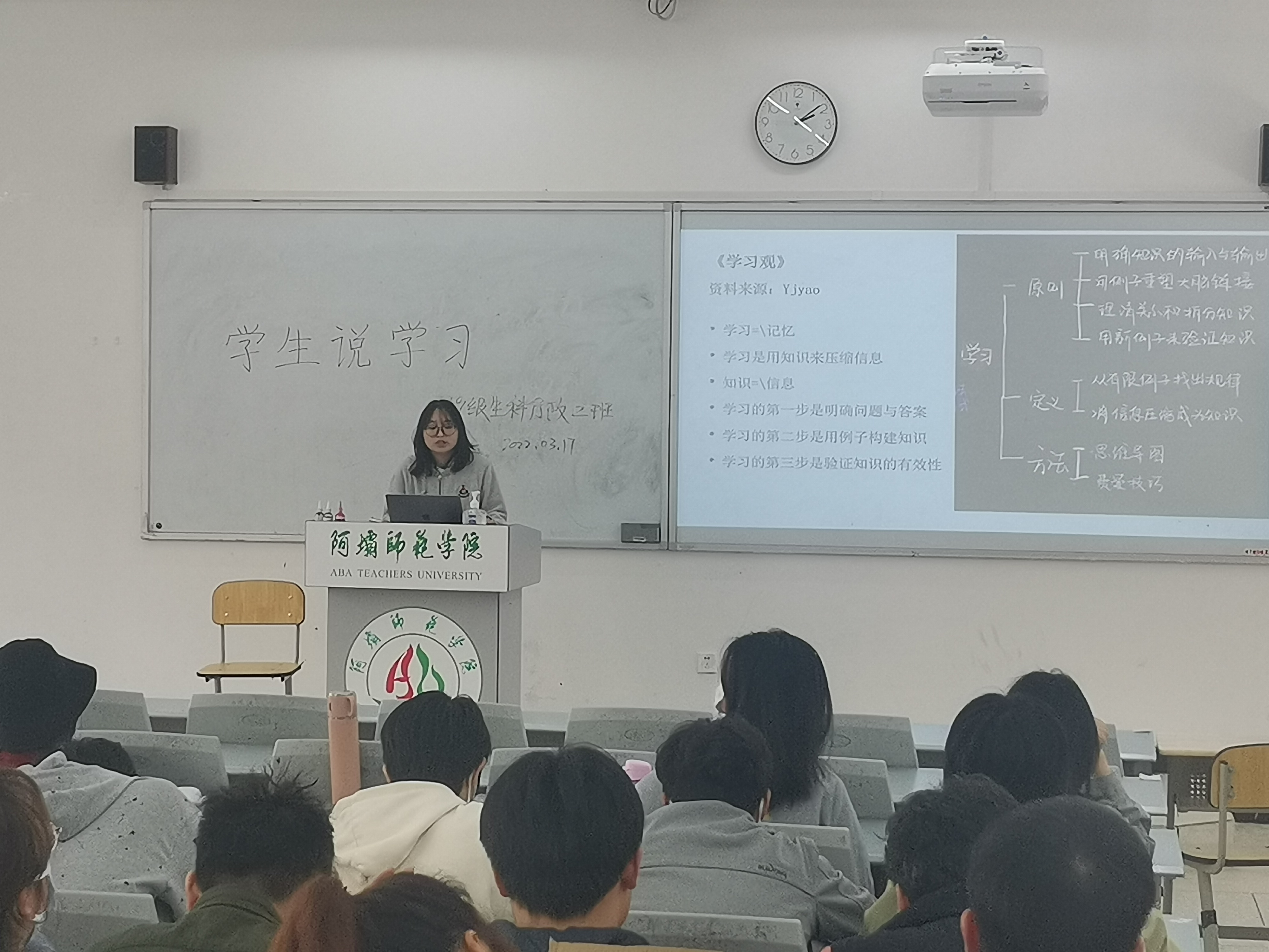 各班级同学们以各专业的基础课程、公共课程展开思考,从学习目标、课程内容、学习方法等方面切入,结合自身实际进行构思,精心撰写演说稿、制作多媒体幻灯片PPT演示文稿,自由安排时间场地积极开展班级内部“学生说学习”活动选拔赛。按照工作要求,各班级需要选报一名优秀同学参加学院定于3月30日的“说学习”活动决赛。