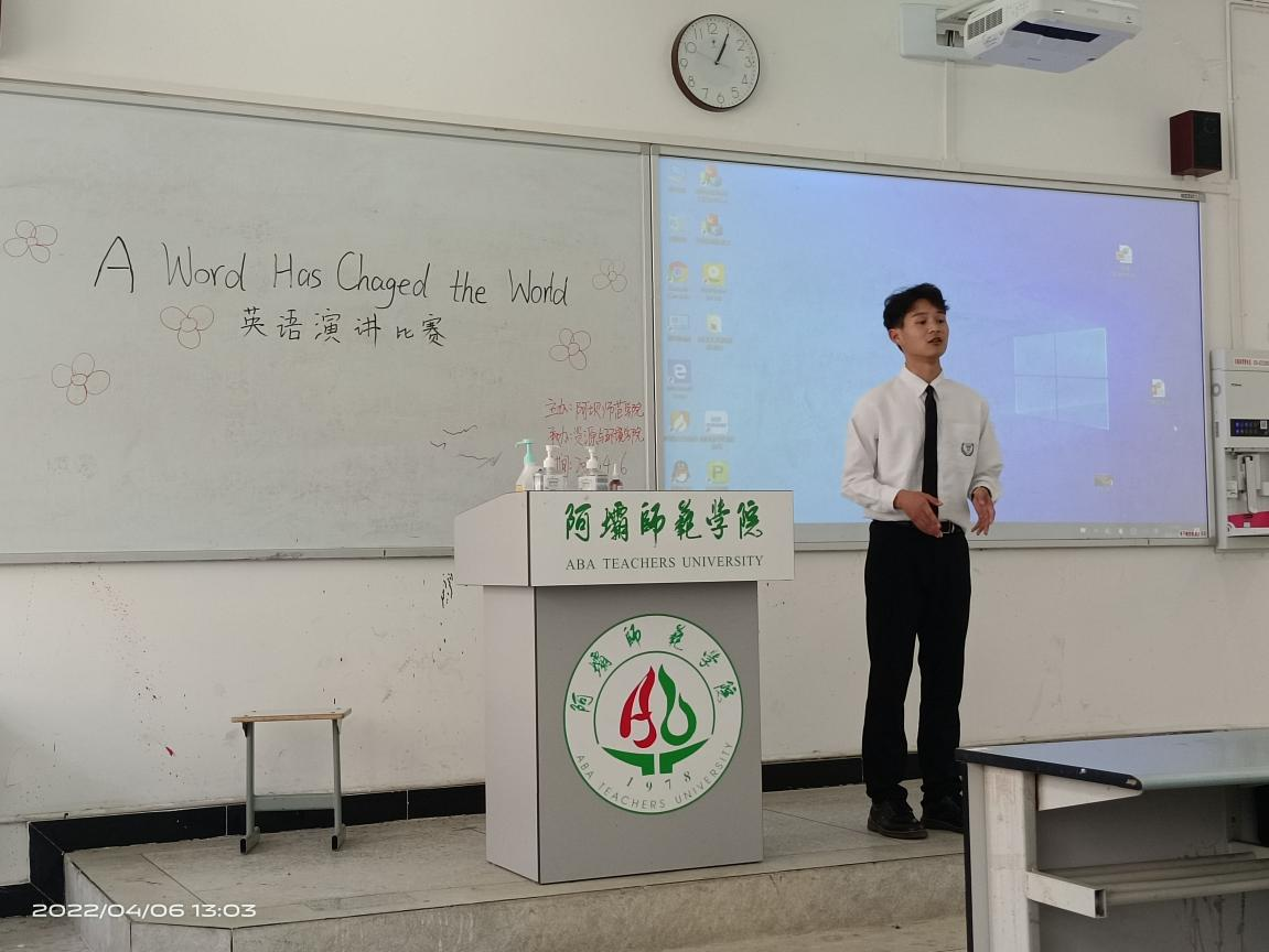 【本网讯】为充分发挥校园文化活动在专业特色凝练、学风技能养成等方面对学生综合素质提升的作用,进一步提升大学生英语演讲水平,在党总支副书记余列的部署下,我院学生工作办公室刘文超、王艳蓉、何婷老师精心指导下,2022年4月6日13:00,在树人楼C202多媒体教室举办“资源与环境学院第一届”英语主题演讲大赛,本次比赛由佘星瑶同学主持。