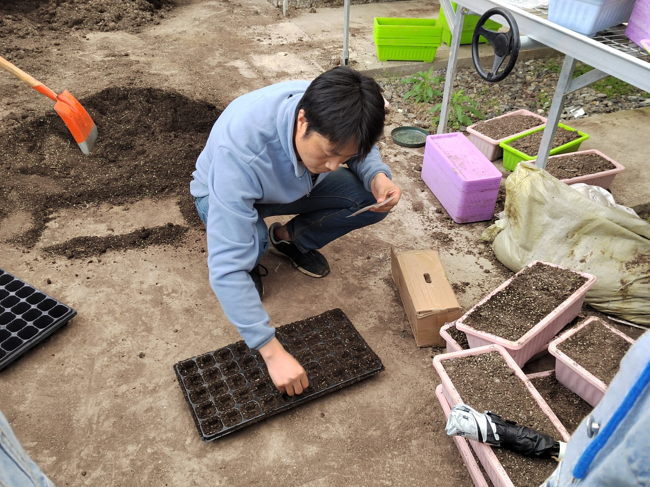 14:00,张建强老师讲解种子育苗相关知识并演示育苗、传送、浇水的整个过程,紧接着志愿者进行了白菜苗的移植,将大棚内白菜苗移植到温室内。