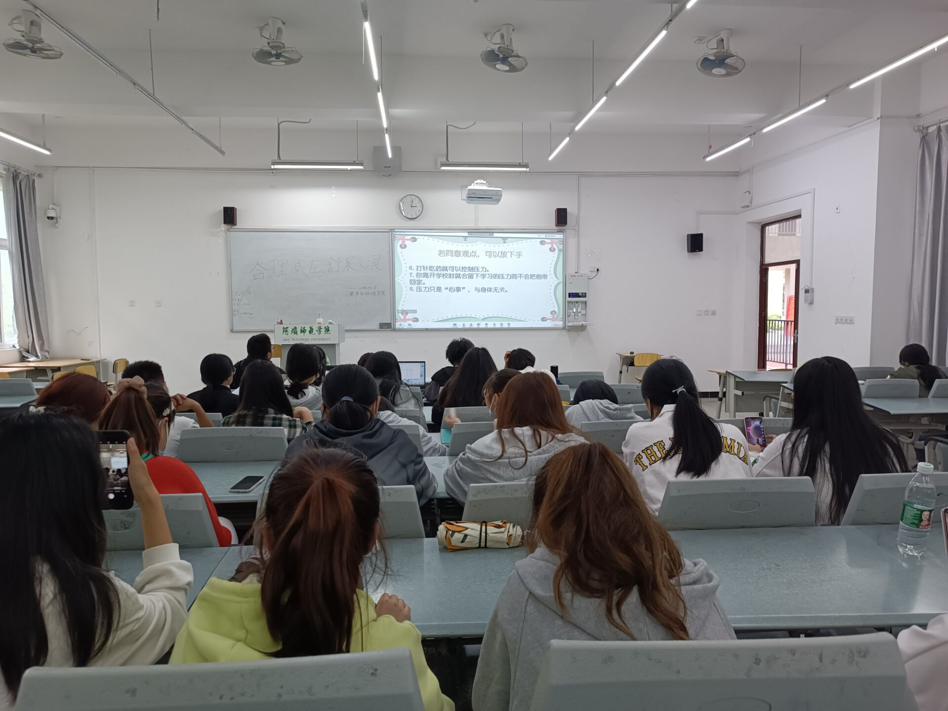 【本网讯】为让学生们学会自我调节,培养积极和乐观的生活态度,我院2021级全体学生于2022年4月27日15:00在树人楼C101、C102、C103展开“合理减压,舒展心灵”线上讲座。