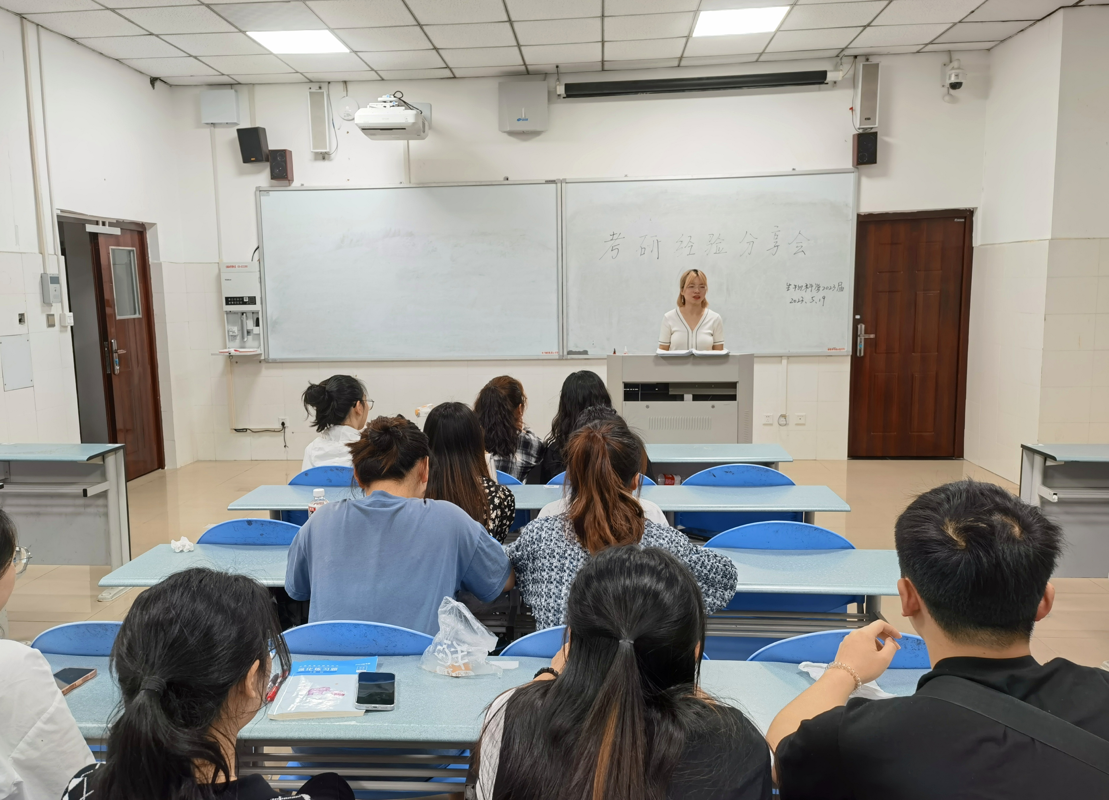 【本网讯】为促进学生高质量发展,学思用贯通、知信行统一,帮助2024届毕业生更好地准备研究生入学考试,生物教研室于2023年5月19日晚7点在实验楼A315举行了考研经验分享会。本次考研经验分享会邀请了2023届生物科学毕业生中考取研究生的部分同学给2024届有志考研的生物科学专业同学介绍考研经验,传经送宝。