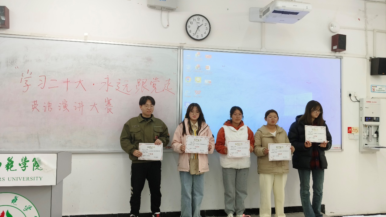 本次英语主题演讲比赛的选手们个个精神饱满,斗志昂扬,比赛过程中,大家的演讲主题突出、论点鲜明、语速流畅,充分地展现出了自己的观点。本次英语主题演讲比赛的成功举办,不仅体现全院各班参赛同学们扎实的英语基本功,更彰显了选手们学习党的二十大精神,永远跟党走的坚定意志。