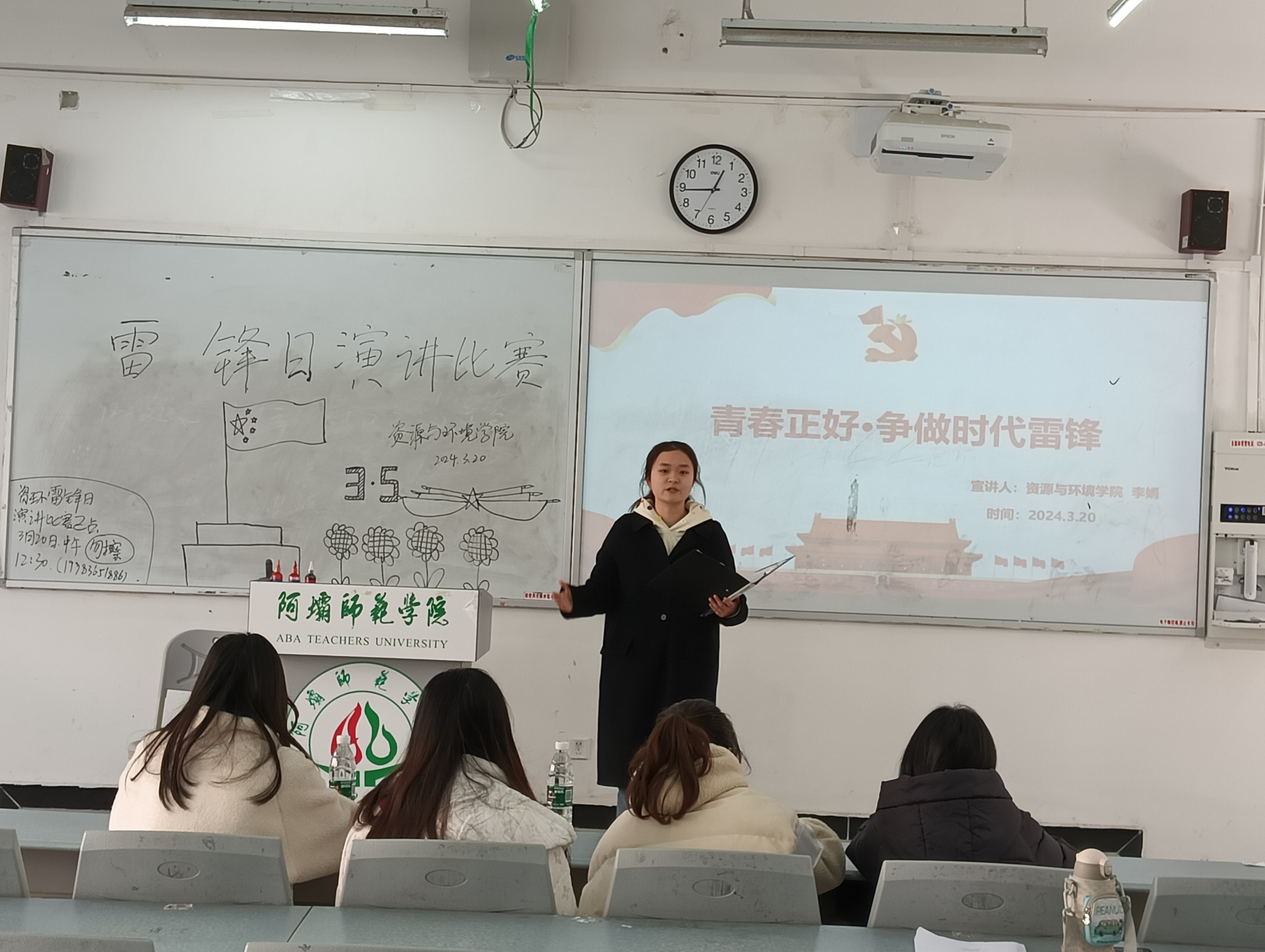 【本网讯】为了进一步弘扬雷锋精神和中华传统美德,践行社会主义核心价值观,提升同学们的演讲技巧,资源与环境学院于2024年3月20日中午12时30分在树人楼C103举办“雷锋日”演讲比赛。此次演讲比赛以雷锋精神及其生平事迹为主题,选手们各自准备演讲材料,并辅以PPT进行演讲。本次比赛由代雅馨主持。