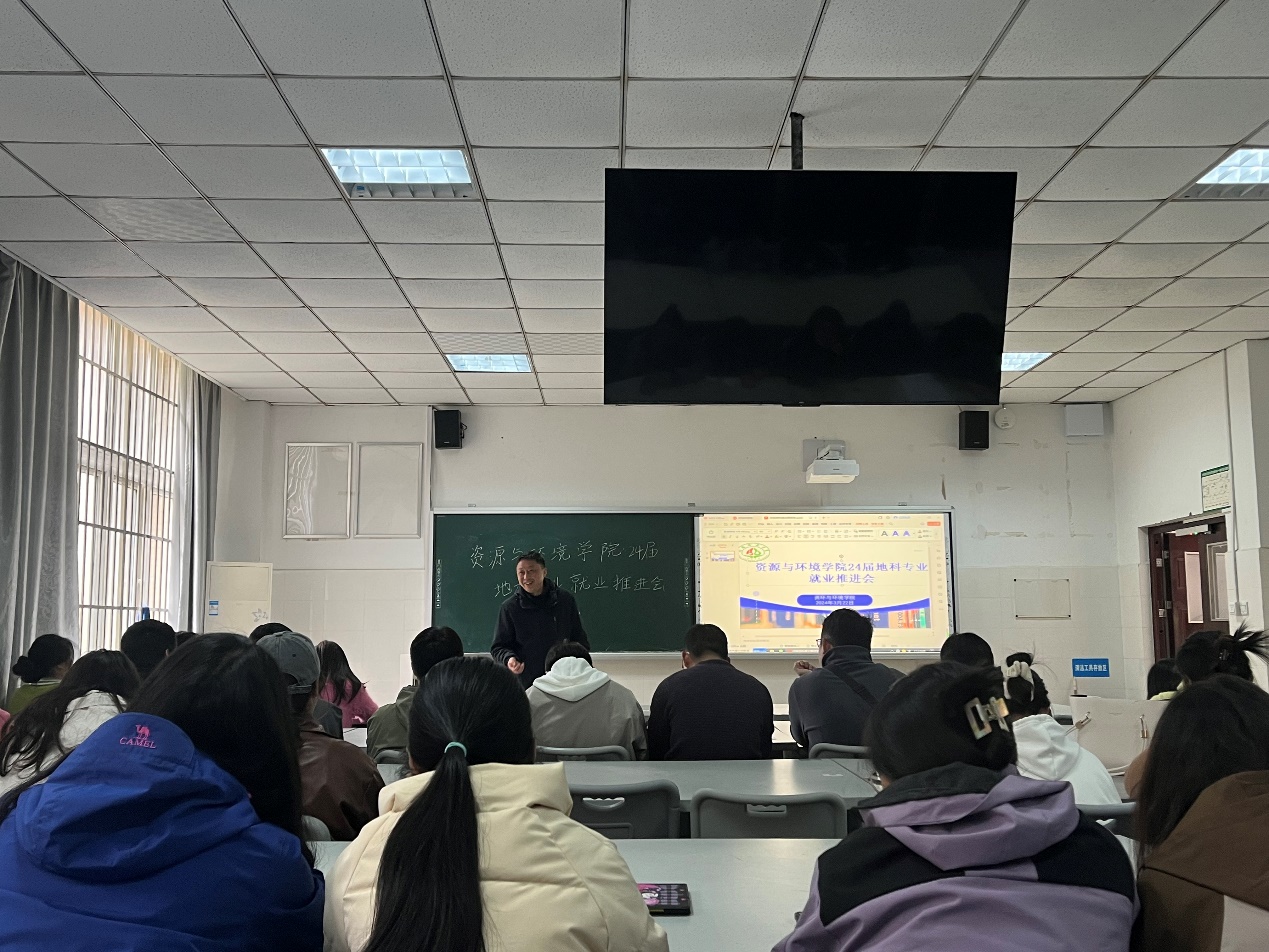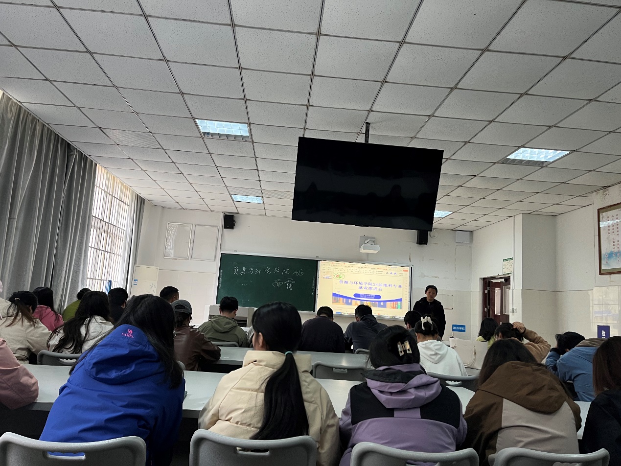 【本网讯】2024年3月22日上午11:00,资源与环境学院在实验楼A111教室召开2024届毕业生就业工作推进会,学院党委书记余列、副院长廖光萍、就业干事刘文超老师出席会议,2020届地理科学专业40余名同学参加会议。会议由余列主持。