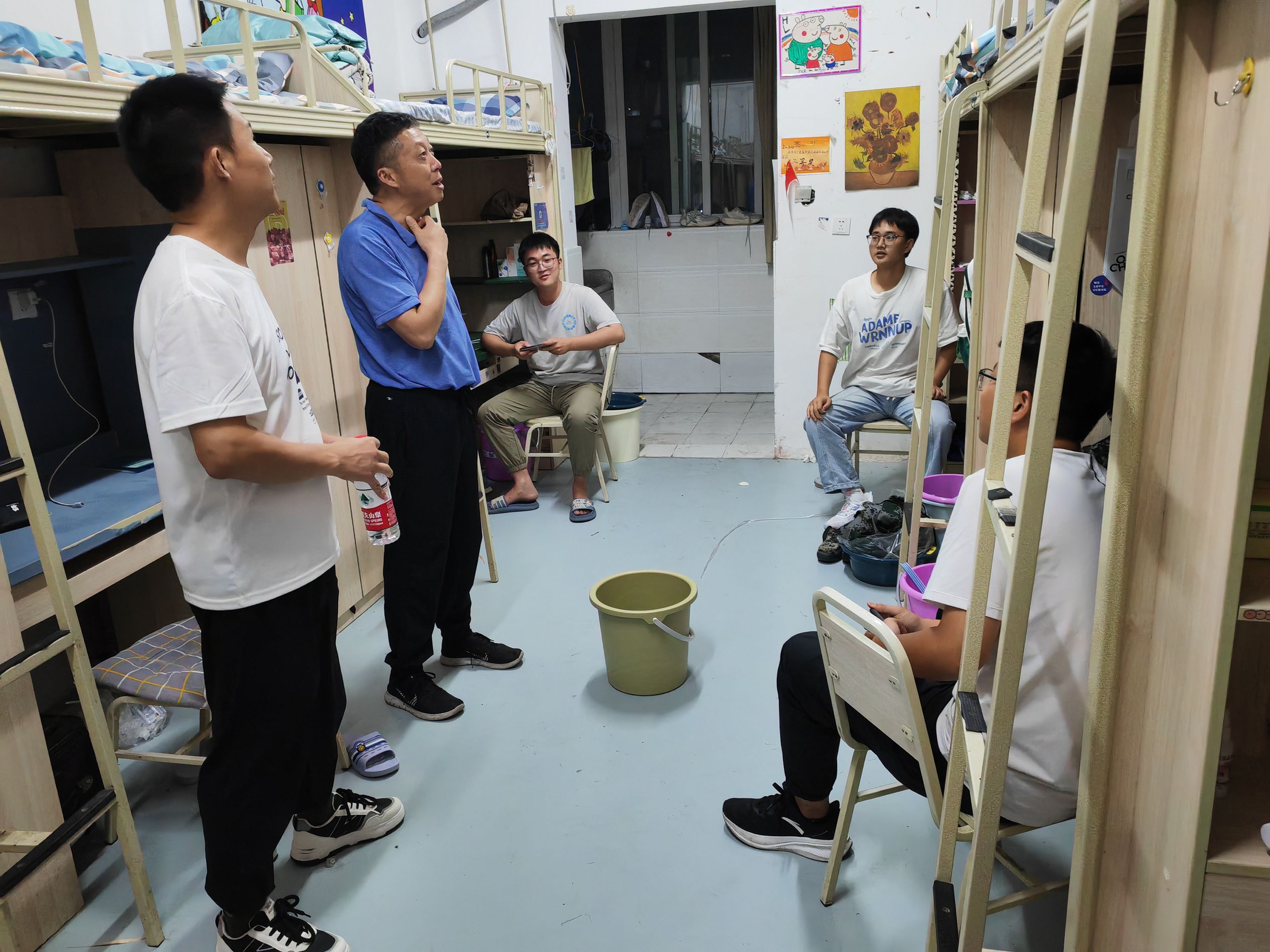 【本网讯】金秋已至,热情不减,期盼已久,我院迎来了2024级新生。为深入营造良好的生活环境和学习氛围,了解新同学们的报到情况,2024年9月5日19:45,资源与环境学院党委书记余列带队资源与环境学院学生工作办公室副主任刘文超、学院自律委主席粟洋及全体宿管部工作人员走访桃园5栋和1栋我院新生寝室,看望新同学,关心新生。