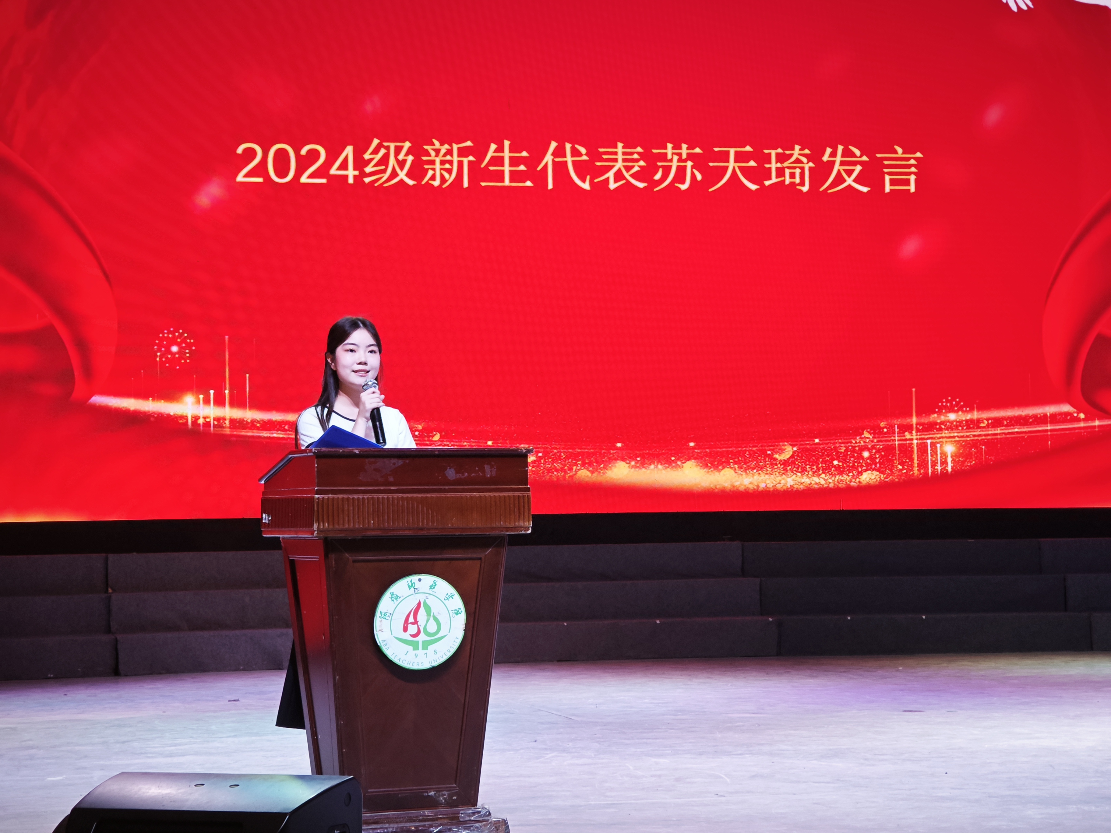 其次,来自于2024级生物科学专业的苏天琦同学作为新生代表发言,她回顾了来校报到至今的所见所闻,表达了对学校、学院的精心准备的真挚感谢,也代表全体新同学表示誓将刻苦学习,勇攀知识的高峰,畅游知识的海洋。