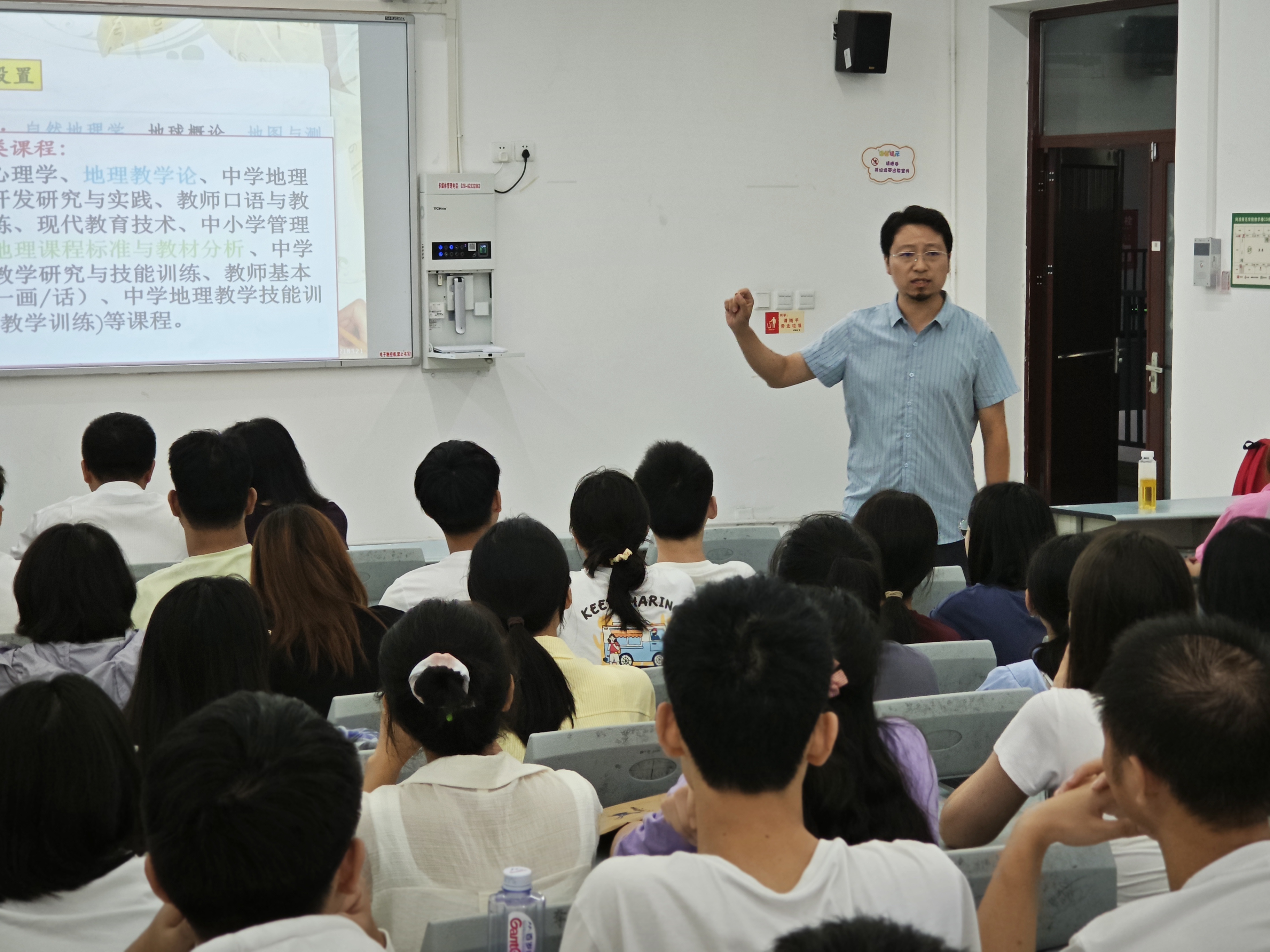活动伊始,胡尧主任详细介绍了地理科学专业的相关情况。他从专业的历史沿革、课程设置、师资力量、实践教学、科研平台以及就业前景等多个方面,为新生们勾勒出了地理科学专业的全貌。胡尧主任的讲解深入浅出,使新生们对即将开始的专业学习有了更加清晰的认识和期待。