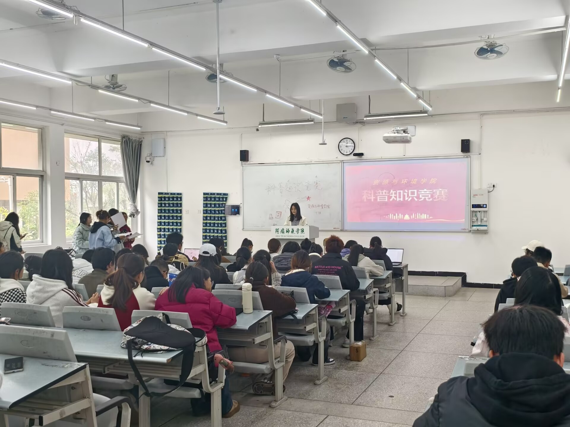 【本网讯】为进一步丰富我院学生的课余文化生活,落实“三全育人”,促进学生全面发展,资源与环境学院于2024年11月13日12:10在树人楼D102教室举办“资源与环境学院第三届大学生科普知识竞赛”。此次竞赛的内容涵盖生物、化学、物理、天文、计算机等多个学科,我院同学们踊跃参加。