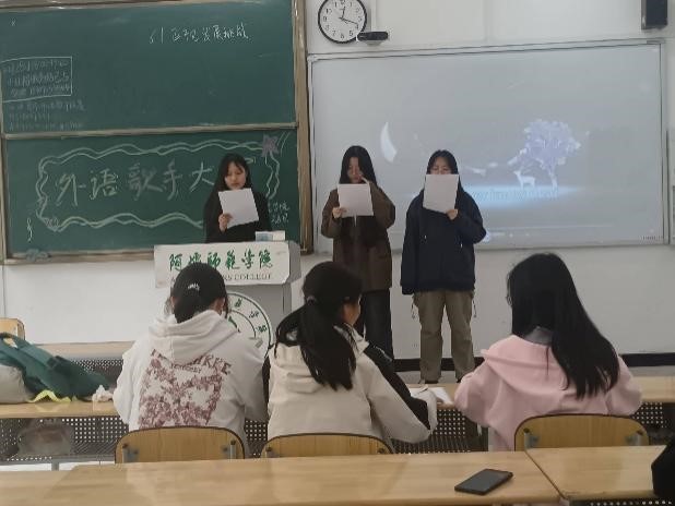 【本网讯】用歌声传递中国故事,让青春绽放多彩光芒。2025年4月28日中午12时10分,我院于树人楼D101举办了资源与环境学院“声聚世界·青春向党”外语歌手大赛。担任本次比赛的评委有学院分团委副书记徐倩倩、团委办公室副部长龚思鸿、宣传部副部长曾雯。