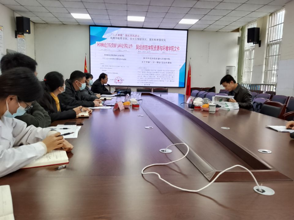 【本网讯】2022年3月30日11:30预评估专家李少达教授莅临资源与环境学院开展访谈,与相关人员进行座谈。参加座谈的人员共14人,为资源与环境学院党委副书记余列、副院长王丽华、副院长侯雨乐、教科办主任刘蓉、学工办副主任刘文超、党政办主任曾淼、实验室主任王仕英、地理教研室主任胡尧、化学教研室负责人何红艳、教师代表:吴艳、李晓峰、张亚平、何乾瑞、苏柯,会议由王丽华主持。