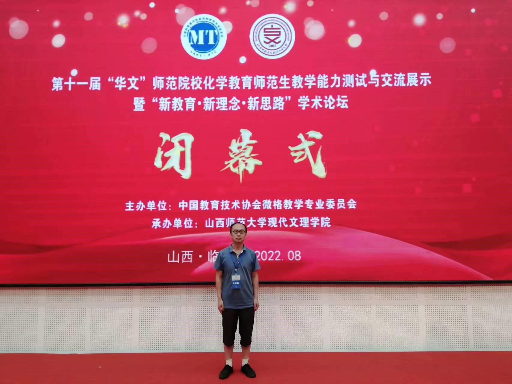 为了强化化学专业师范生的教学能力,培养学生的创新意识,促进学科发展,打造“高素质、专业化、创新型”的教师队伍,中国教育技术协会微格教学专业委员会以《教师教育振兴行动计划(2018-2022年)》为指导举办了本次活动。南京师范大学、华中师范大学、陕西师范大学等来自全国各地共49所师范院校351名化学学科教学硕士研究生及本科师范生参赛。我校由刘林老师带队,刘林和方正娇老师指导的5名学生参赛。本次活动由教学设计和师范技能线上展示两部分构成。8月21日,我校4名学生(其中1名学生因病未参加)进行了教学技能线上展示。在教学设计方面,我校学生获得教学设计一等奖1名(2020级苟淼),二等奖1名(2020级刘畅),三等奖3名(2019级赵彦艳、2020级向君豪、易雪豪);在教学技能展示方面,我校学生获得二等奖3名(2020级苟淼、向君豪、易雪豪),三等奖1名(2020级刘畅)。