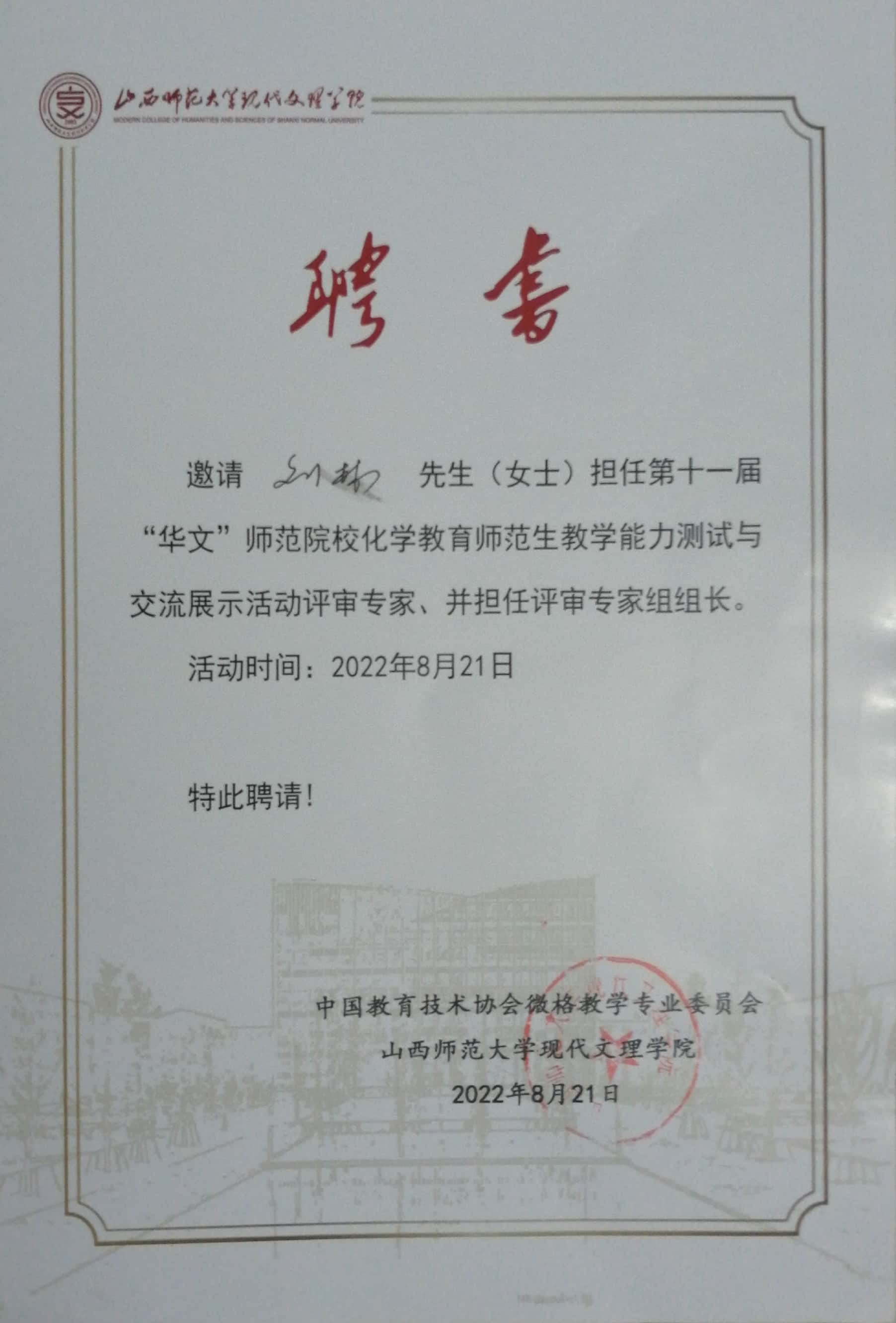 【本网讯】2022年8月20日-22日,由中国教育技术协会微格教学专业委员会主办,山西师范大学现代文理学院承办的第十一届“华文”师范院校化学教育师范生教学能力线上测试与交流展示活动暨“新教育·新理念·新思路”学术论坛在山西师范大学现代文理学院举行。