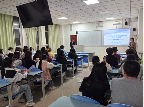 【本网讯】2025年10月14日晚,四川省自然资源科学研究院涂卫国研究员应邀在我校实验楼A栋314教室,作了题为《城市河湖生态系统韧性提升关键技术创新及应用》的专题讲座。讲座由资源与环境学院院长王丽华主持,资源与环境学院相关专业师生参加。