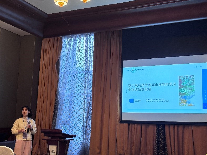 我院参会教师积极融入会议氛围,与同行们进行了广泛的交流与探讨。其中,王丽华副教授受邀做了题为《基于观赏属性的高山植物花叶性状及生态适应性策略》的专题报告。她详细介绍了自己及团队在高山植物花叶性状及其生态适应性方面的研究成果,并探讨了这些研究成果对于环境保护和生态恢复的重要意义,赢得了与会专家学者的广泛关注和赞誉。