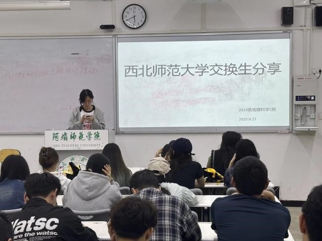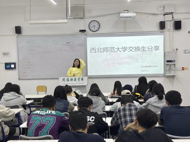 【本网讯】为搭建经验共享平台,助力学子明晰学业路径、提升专业素养,9月27日,23级地理科学1班和2班分别在树人楼F104和树人楼C201开展“赴西北师大交换生经验交流会”。各班全体同学参会,由4名从西北师范大学交换学习归来的同学担任主讲人,结合自身经历,从学习和生活两个维度展开深度分享。
